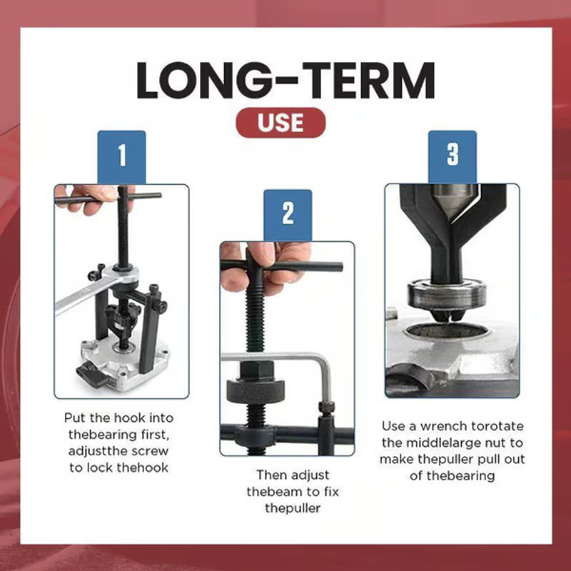 Bearing Puller uses in removing all sleeve-type bearings from diameter 0.6" to 1-1/2" (16mm-38mm). Structure design, gently turning the small wrench can produce a strong pull force.