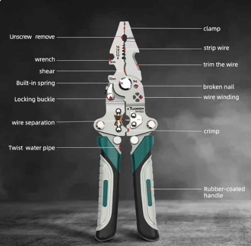 Cut, strip, crimp, clamp, twist, tighten… and so much more.From fixing wires to breaking nails, this Ultimate 18-in-1 Tool does it all with speed and precision.Sharp, high-quality blades ensure clean cuts and perfect stripping in seconds, so you can finish jobs faster and with professional results.Made from durable, high-strength materials, it’s ideal for electricians, technicians, and DIY enthusiasts who demand reliable performance.The rubber-coated handle offers a non-slip, ergonomic grip, giving you full control even during tough tasks.