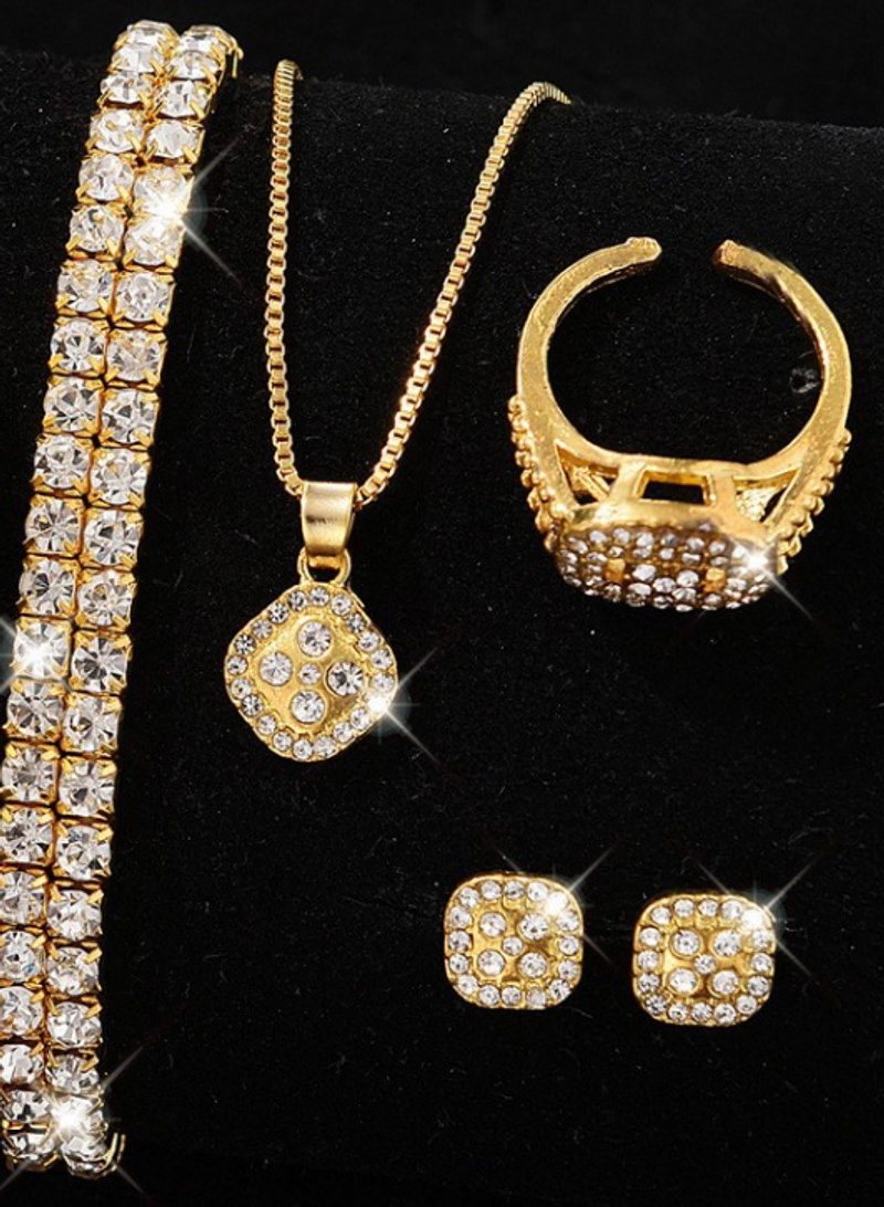 Includes: watch*1+bracelet*1+necklace*1+ring*1+earring*1 pair